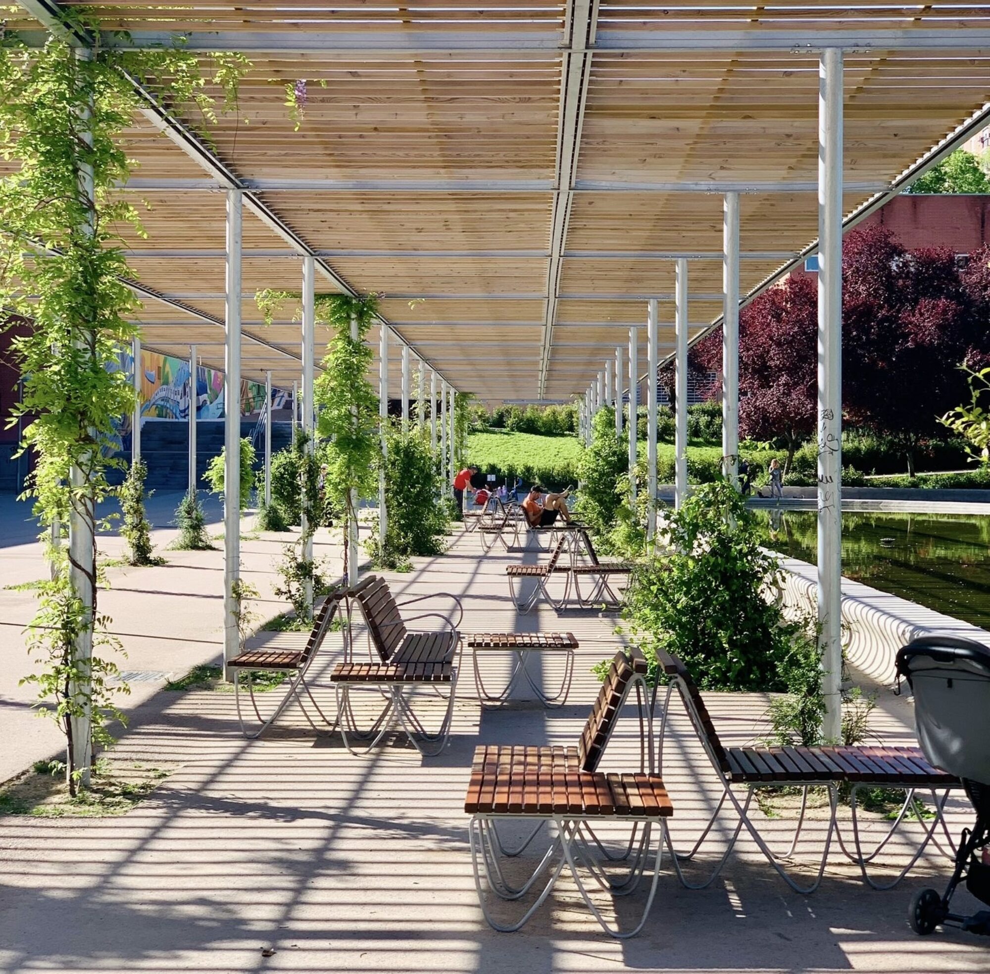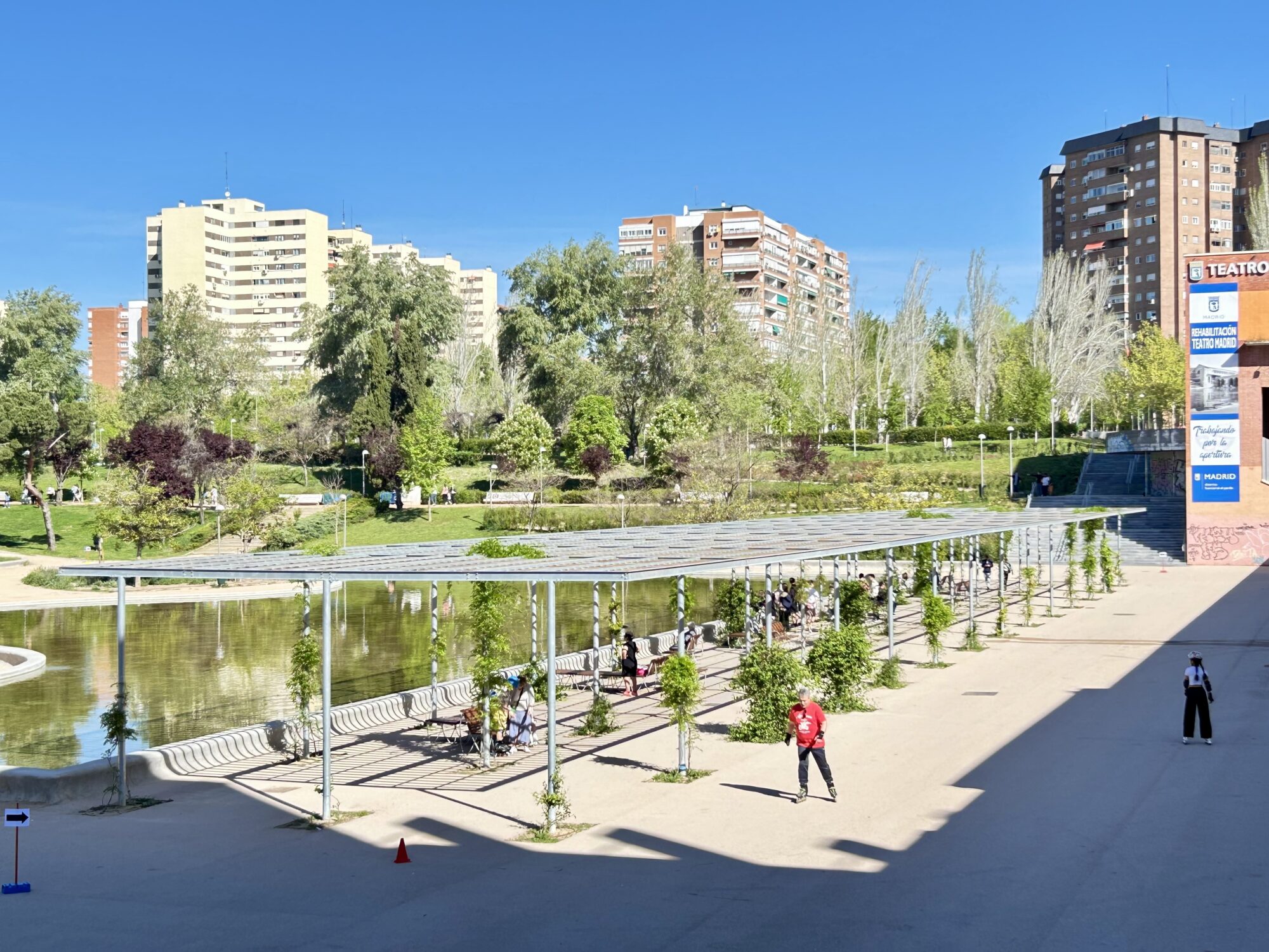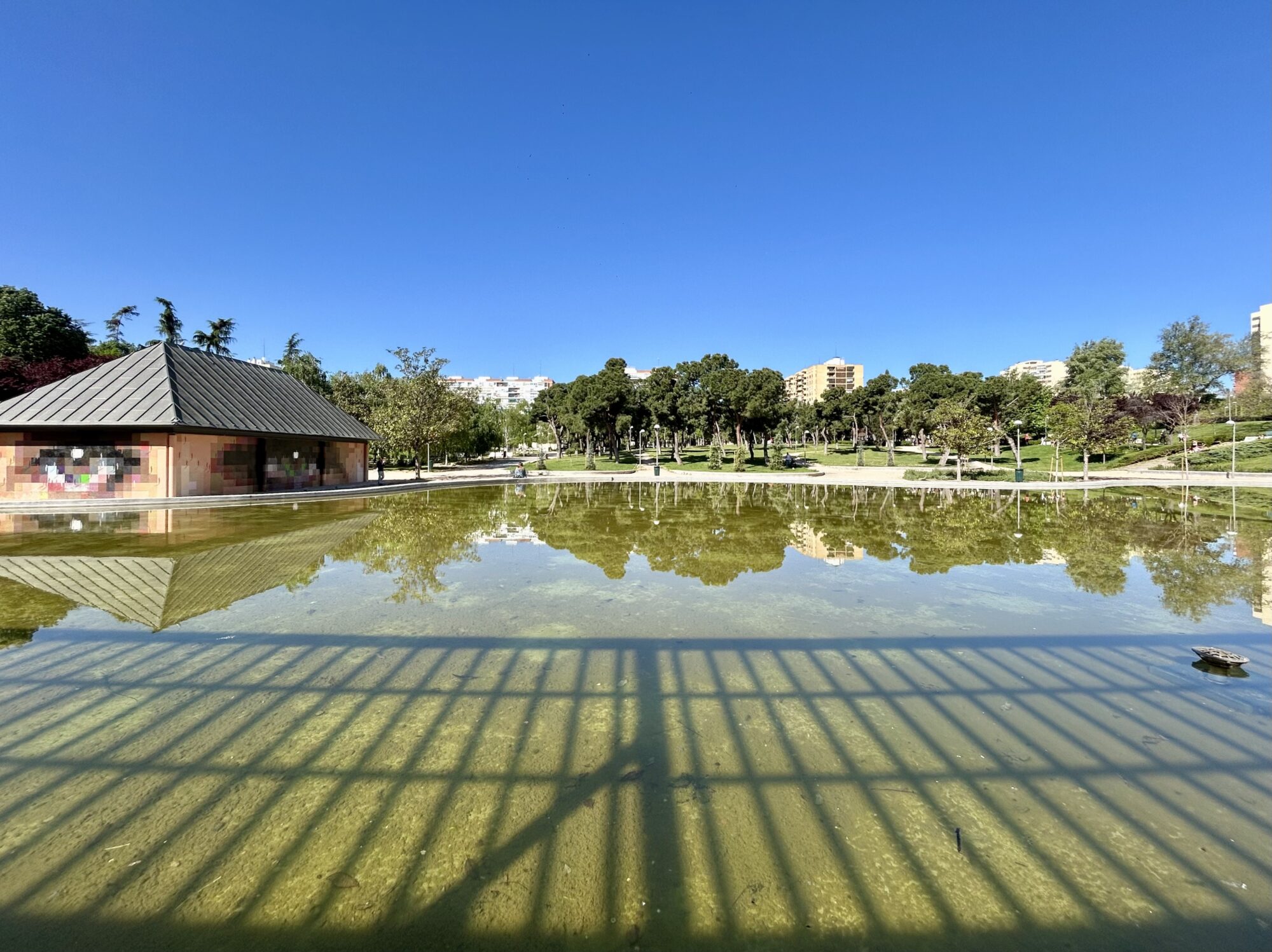 La posición rehundida del espacio en torno al estanque, recuerdo paisajístico de una vaguada, permite el retiro y el aislamiento del ruido metropolitano de las transitadas avenidas con lo circundan. La concentración del agua en el punto más bajo, posición lógica en una vaguada, permite la contemplación sosegada y el reflejo de la arcada clásica del edificio público multifuncional. El bosque de pinos con sus sinuosos caminos traslada al visitante a un entorno natural lejos del estrés diario de la ciudad. Todos estos valores, intrínsecos en el diseño original del parque, son los que necesitan ponerse en valor y complementar con usos y un lenguaje contemporáneo que rejuvenezca este espacio de encuentro.
